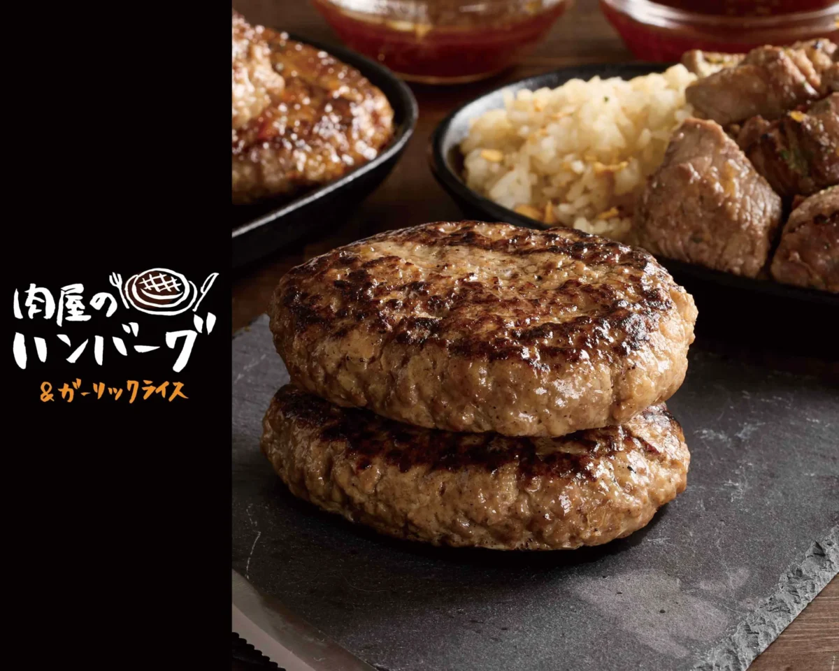 ニンニクたっぷりのガーリックライスと肉厚ジューシーなハンバーグをパンチの効いた特製ソースでお召し上がりください。